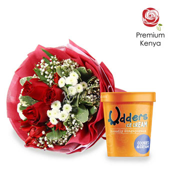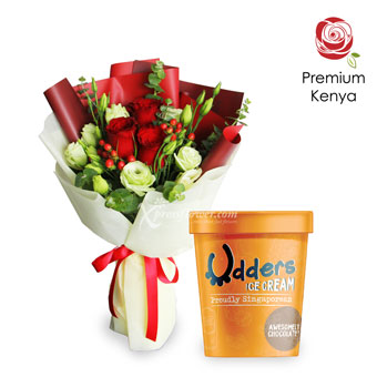 UD1801 Sweet Happiness (3 Kenya Red Roses with Awesomely Chocolate Udders Ice Cream) S$95.00 S$103.55 (incl GST)