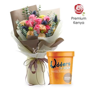 UD2007 I Love You Un-cone-ditionally (6 Kenya Pink Roses with Awesomely Chocolate Udders Ice Cream) S$125.00 S$136.25 (incl GST)