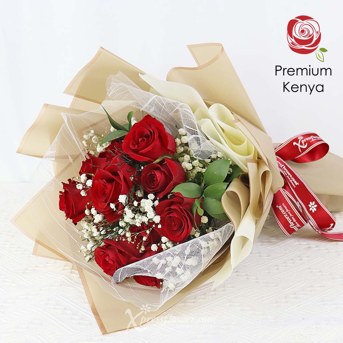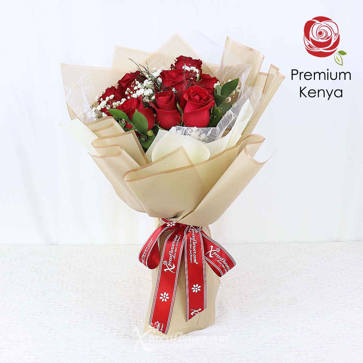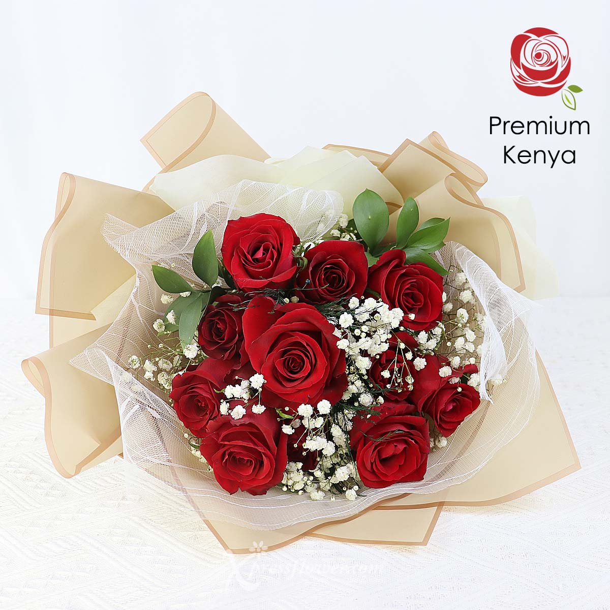Make any romantic occasion extra special with this stunning bouquet of 12 perfect stalks of red roses, which symbolises the timeless message of love, "Be Mine". Surprise your sweetheart and add a little extra sparkle to your day and show your special someone how much they mean to you! Make this the best surprise yet!
