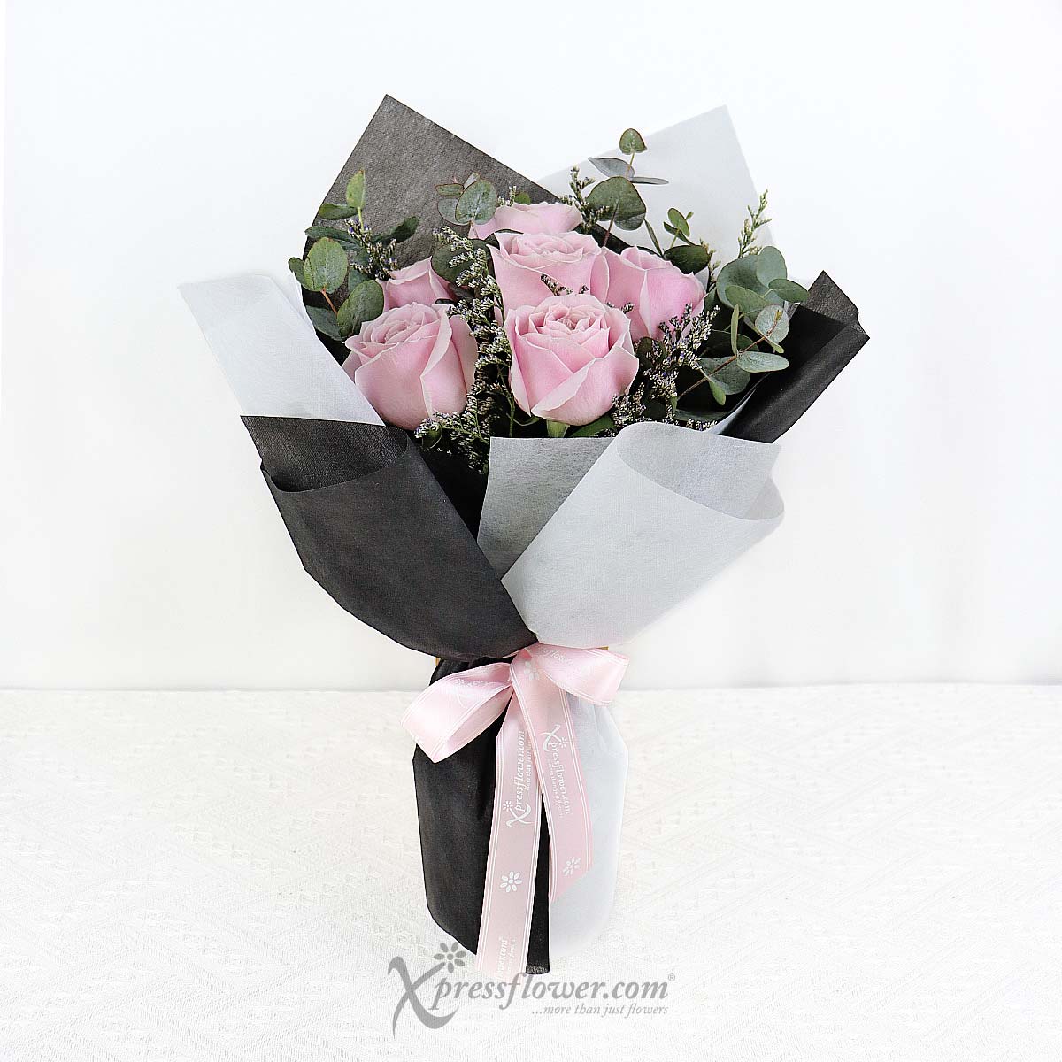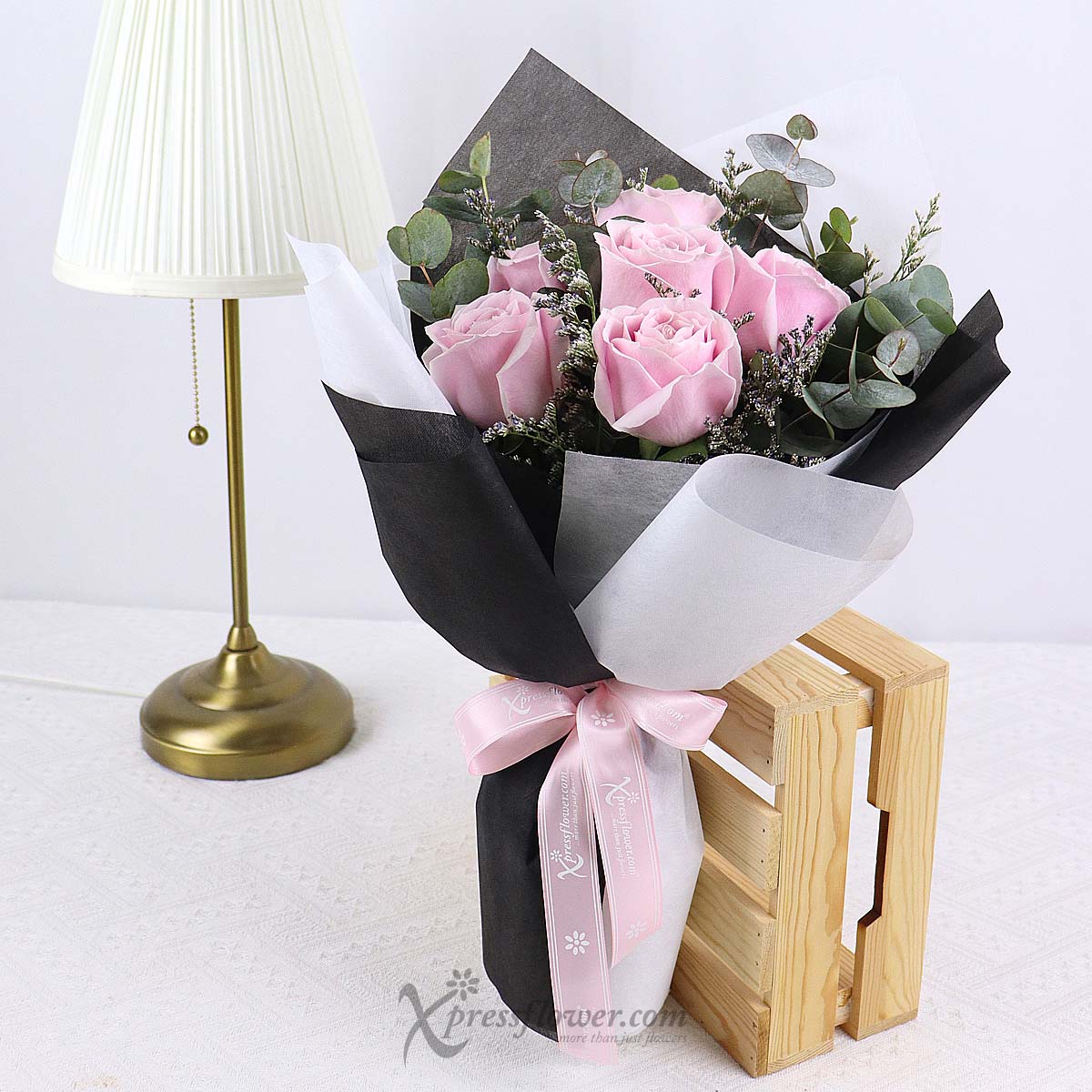 Make a statement with this beautiful bouquet of 6 stalks of light pink roses wrapped in a funky black and white wrapper, finished with a sweet pink ribbon. The perfect way to express femininity and elegance for any occasion, make this the bouquet of choice to show your special someone how much you care and send them a little surprise!