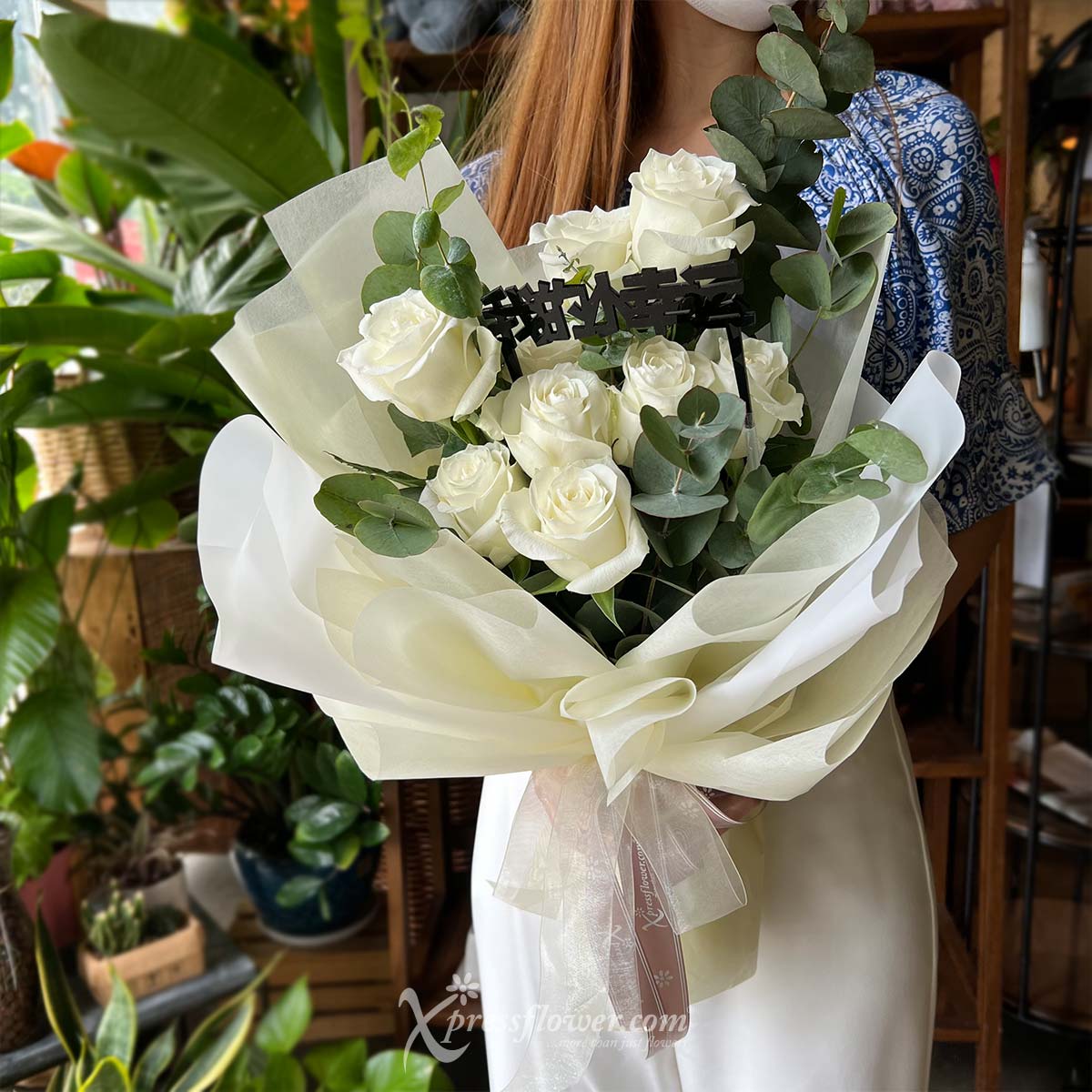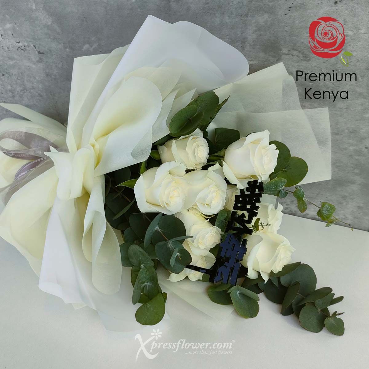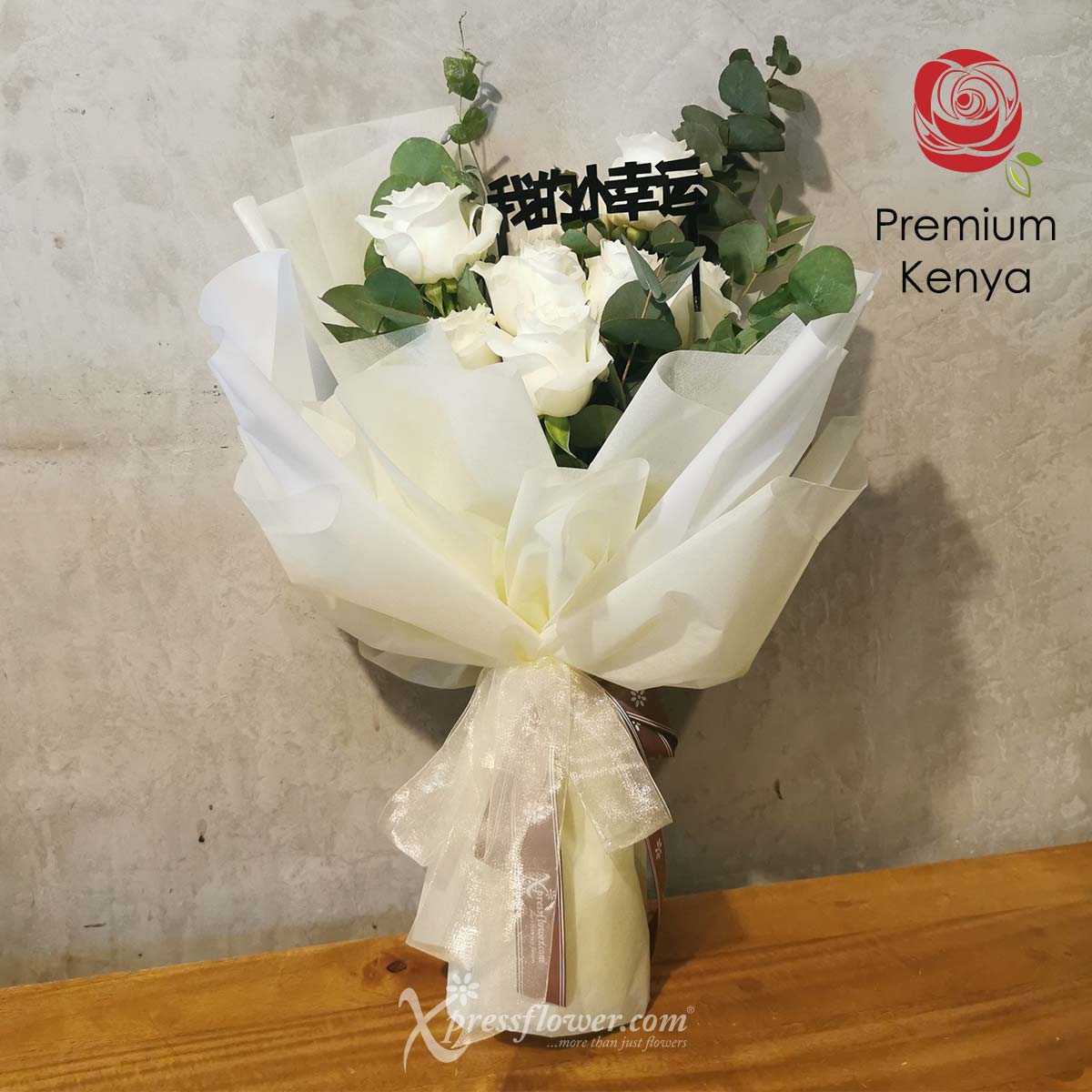This Qixi, show your sweetheart how much they mean to you with this gorgeous 9 stalks premium white rose bouquet with a “Wo De Xiao Xingyun” (My Little Luck) decorative stick. These roses are the perfect symbol of eternal love and loyalty, so make your Qixi perfect with this fresh flower bouquet!