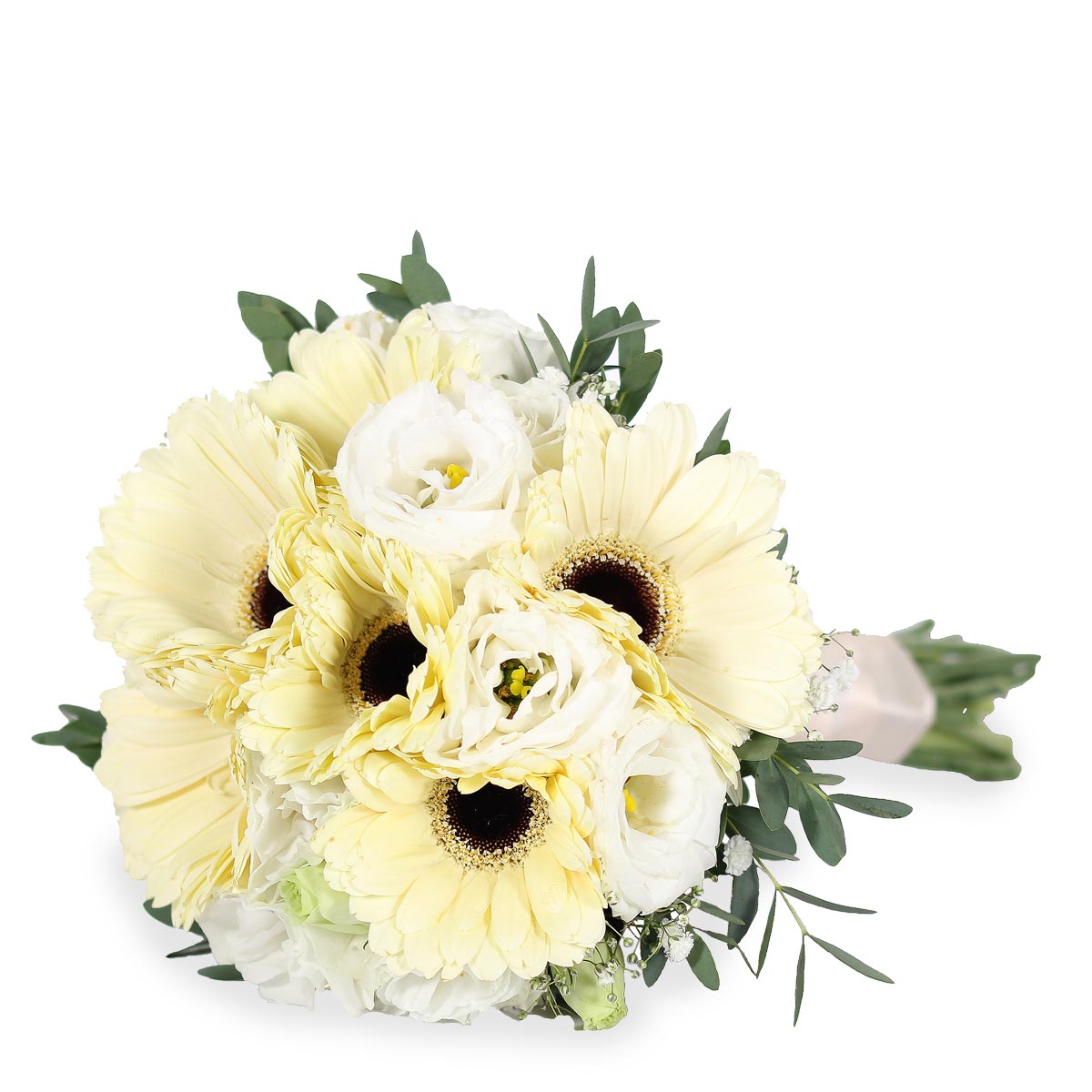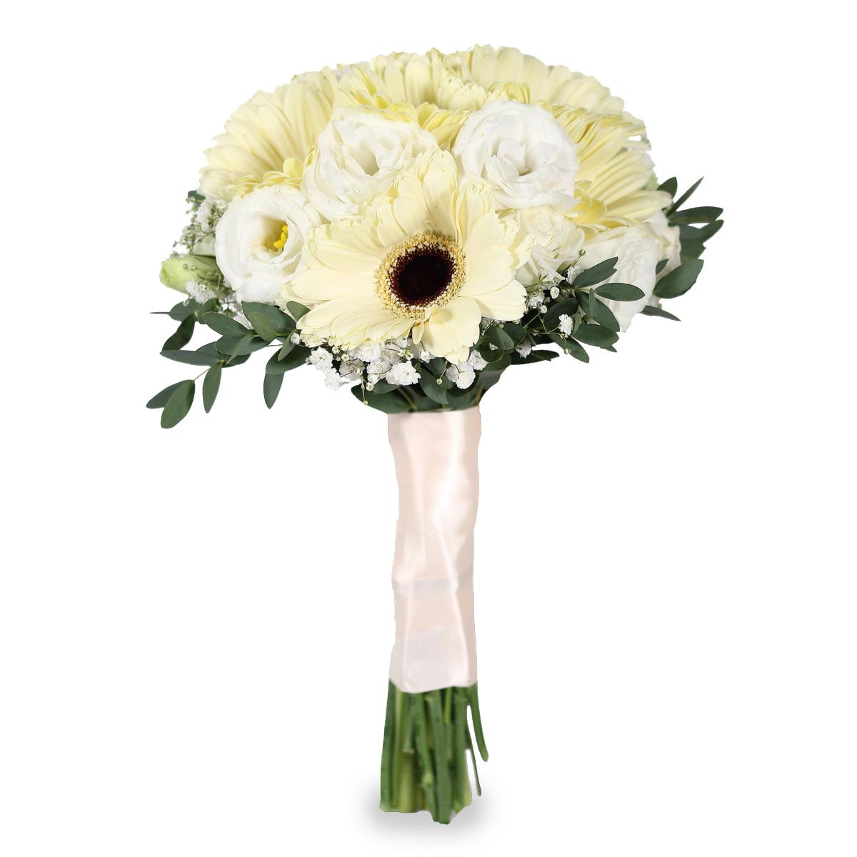 The perfect bouquet for a beautiful afternoon wedding. Let this blooms be part of a beautiful memory as you walk down the aisle to forever. Flowers Used: 6 stalks of cream gerbera, eustoma white, eucalyptus parvifolia and gypsophila (million star) flowers. Dimension Approx. 20cm (L) x 28cm (H)
