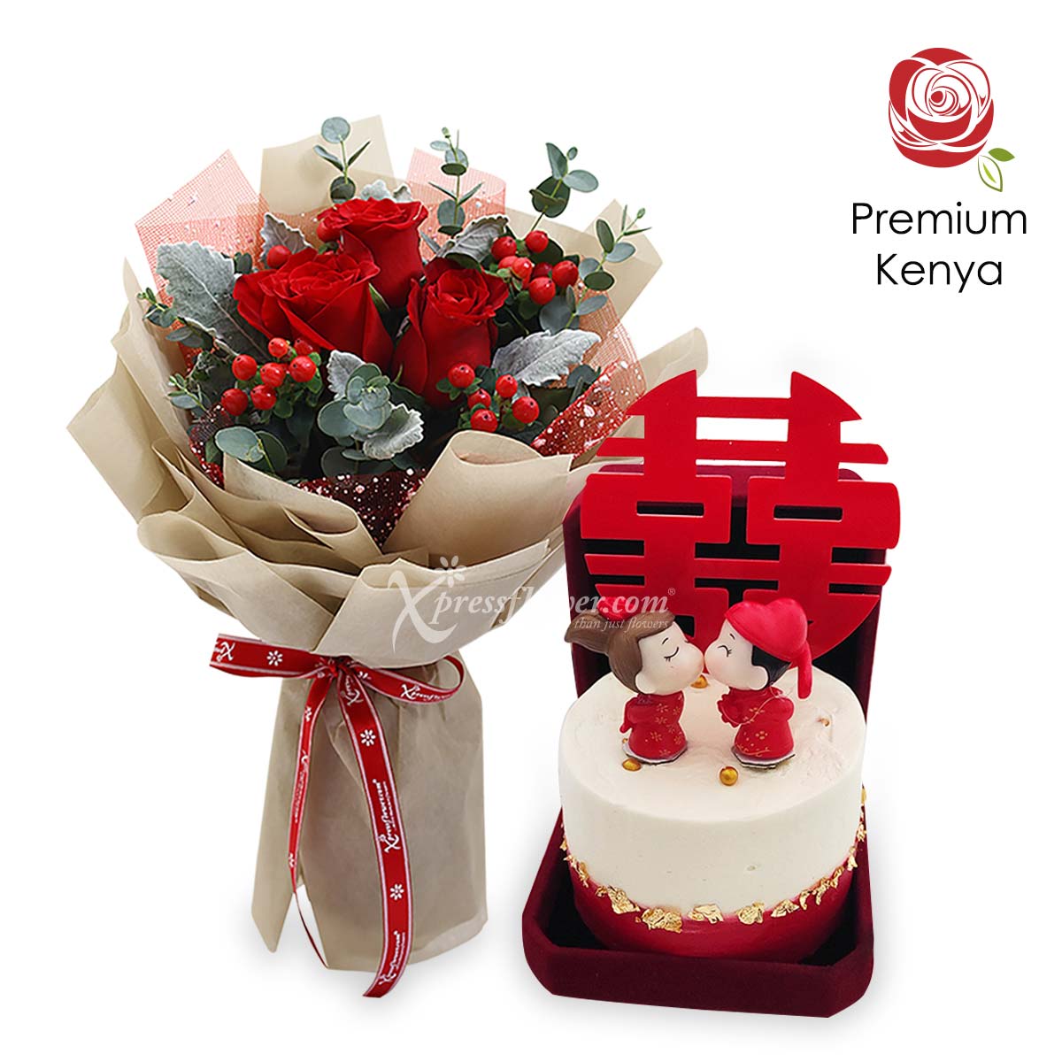 Here’s gifting for a newlywed made easy! Send them this set of 3 stalks of red roses bouquet with a Double Happiness cake and wish the newlywed a great marriage full of love and passion.