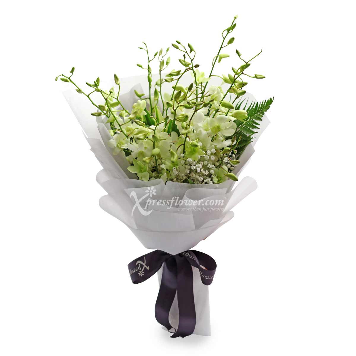 During the hard times, words are of times not enough. Express your condolence and support with this delicate and beautiful condolence bouquet. Flowers Used: 16 stalks white orchid and million star.