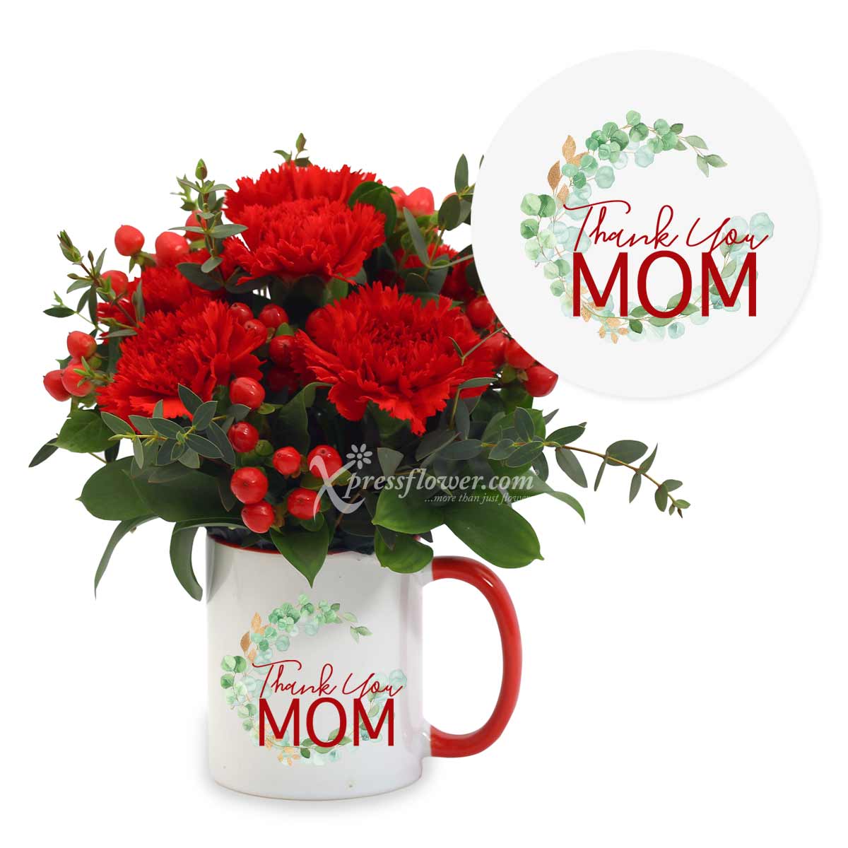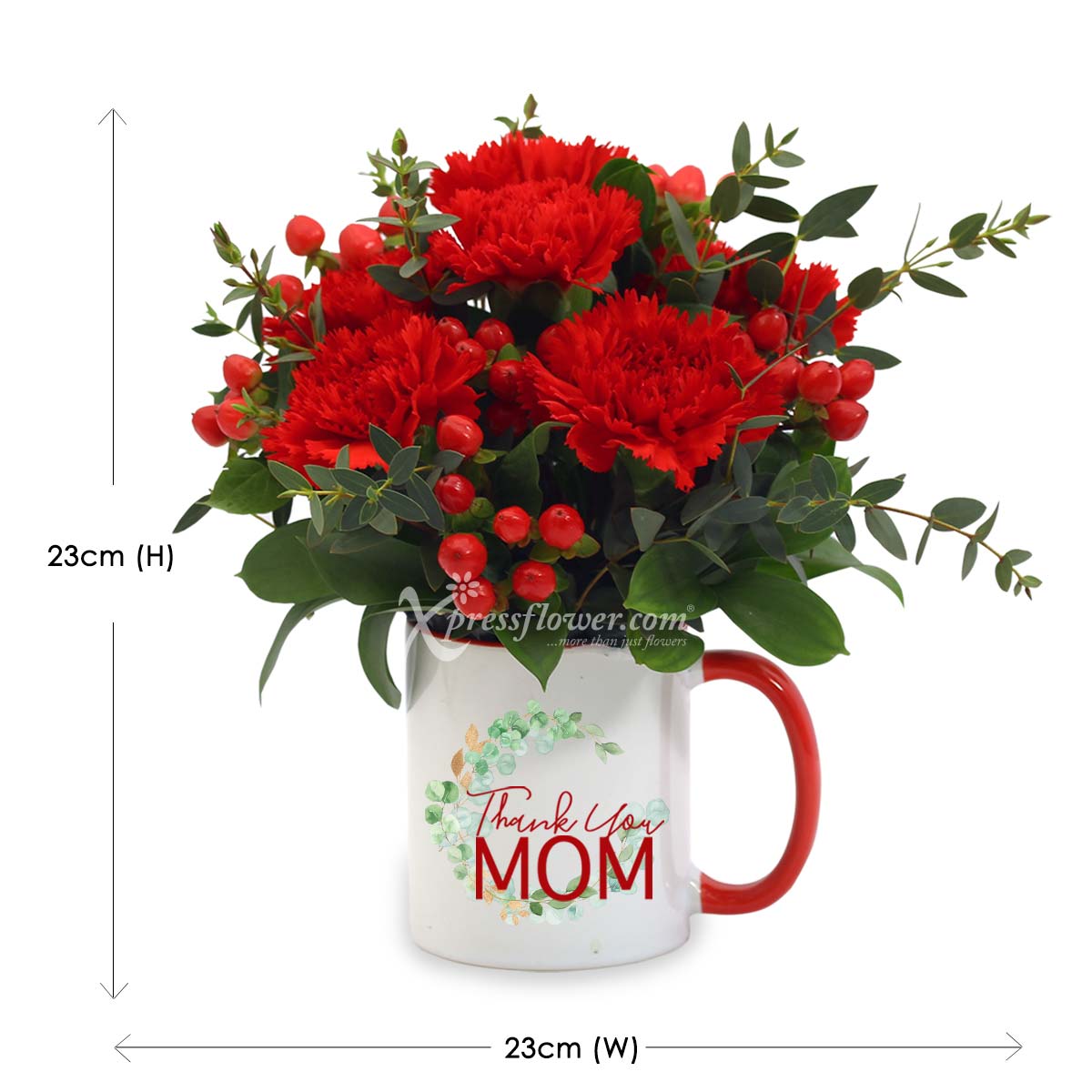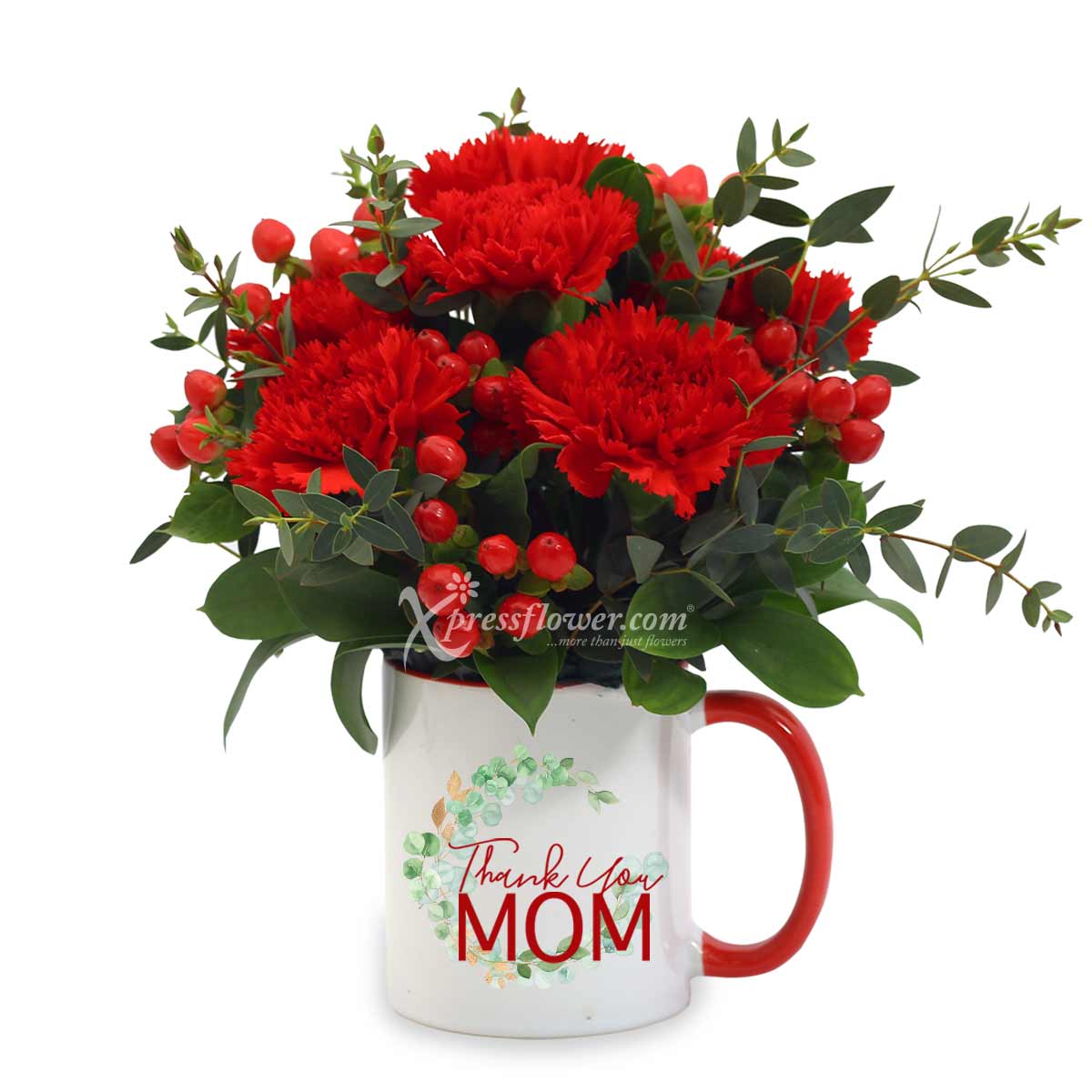 Mom always has the best advice and she knows us the best. Thank mom and pamper her with this red carnations mug arrangement!
