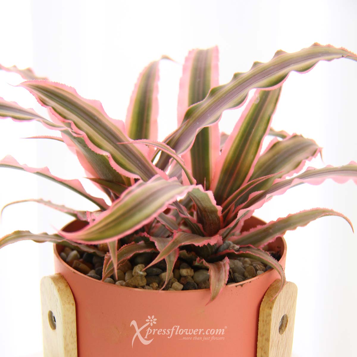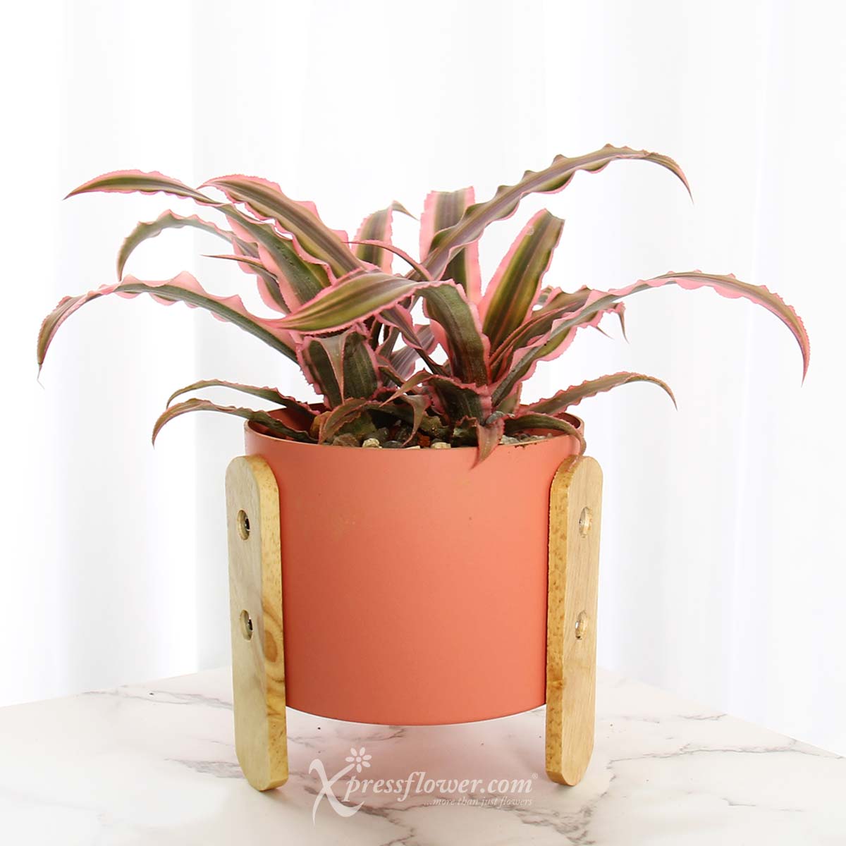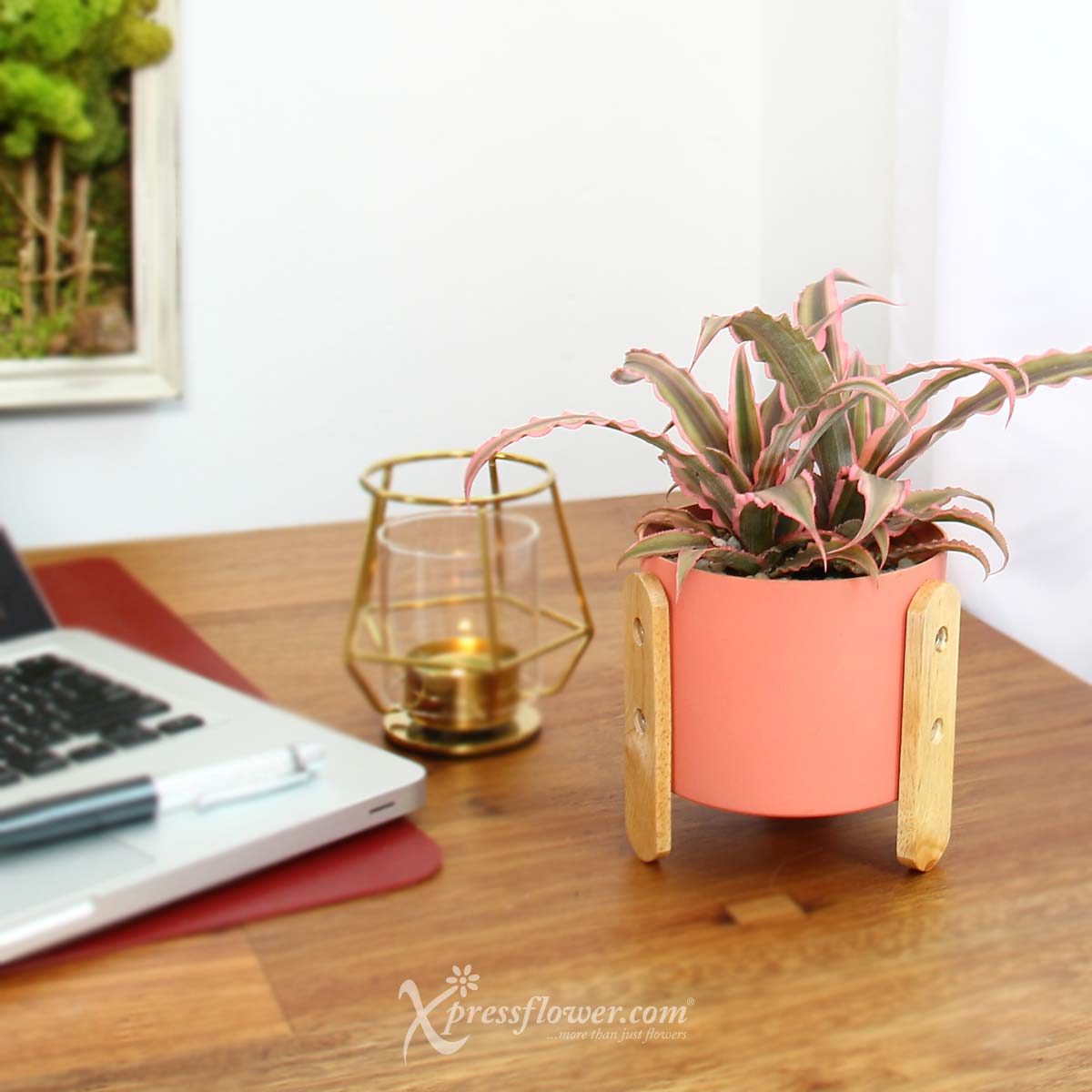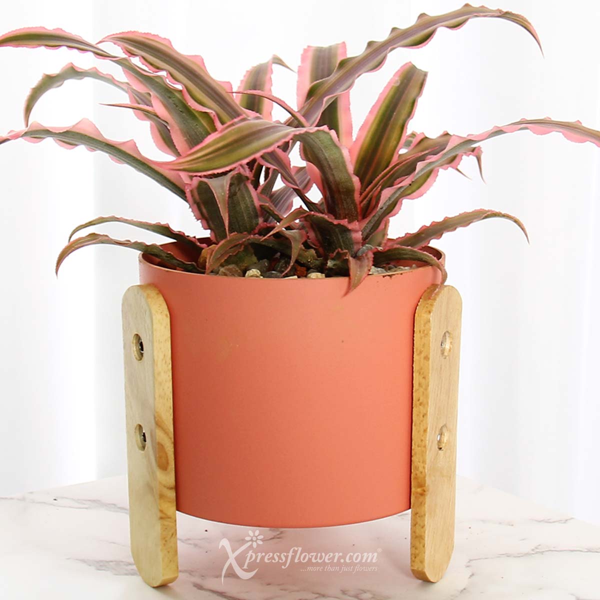 This simple red Cryptanthus Bivittatus plant in a terracotta pot is petite and pretty. With the wooden stand accents, the arrangement can turn into an instant ornament. Gift this planter to your loved one and send them some love!