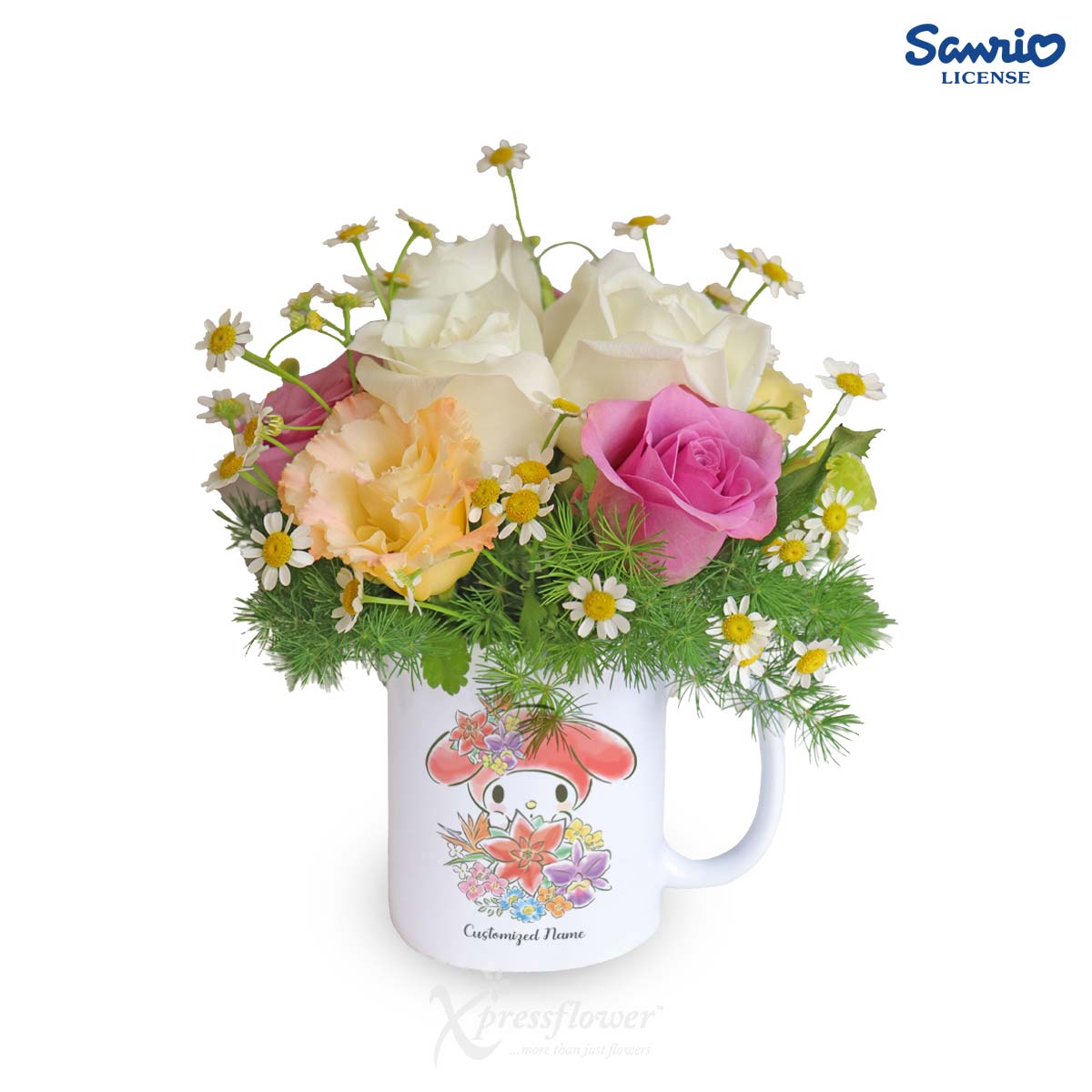 Ignite the birthday excitement for your Sagittarius with our exclusive Sanrio astrology cup of blooms. Personalized with their name, the My Melody 'Sagittarius' mug hosts a vibrant blend of 3 stalks white roses, 3 stalks yam roses, and more, making this a memorable surprise to celebrate their birthday!