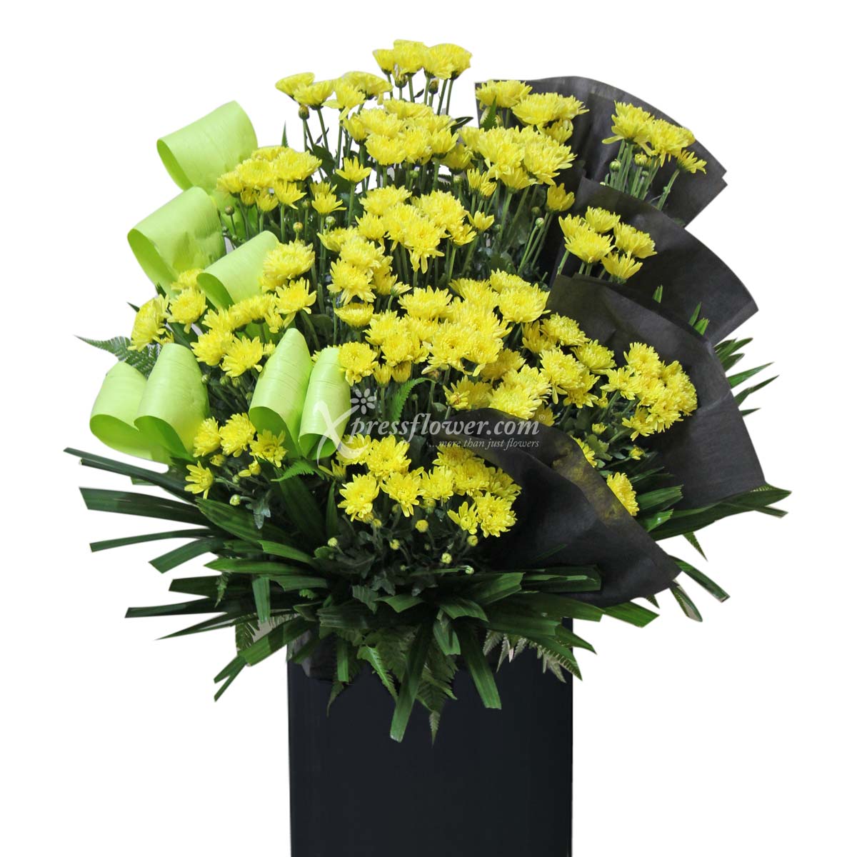 Yellow chrysanthemum spray, finger palm and johor fern.