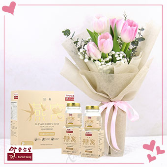 MDBL2554 Joyful Affection (5 Pink Tulips with Eu Yan Sang Classic Bird's Nest) S$155.00 S$168.95 (incl GST)